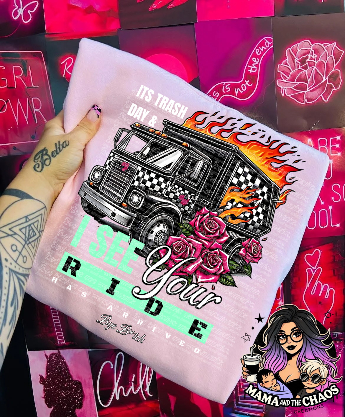 It’s trash day, and guess what? Your ride’s here. The Trash Day: Bye Btch* tee features a flaming garbage truck decked out in racing stripes and roses, with the ultimate clapback: “I see your ride has arrived.” It’s blunt, petty, and absolutely fabulous — just like you.