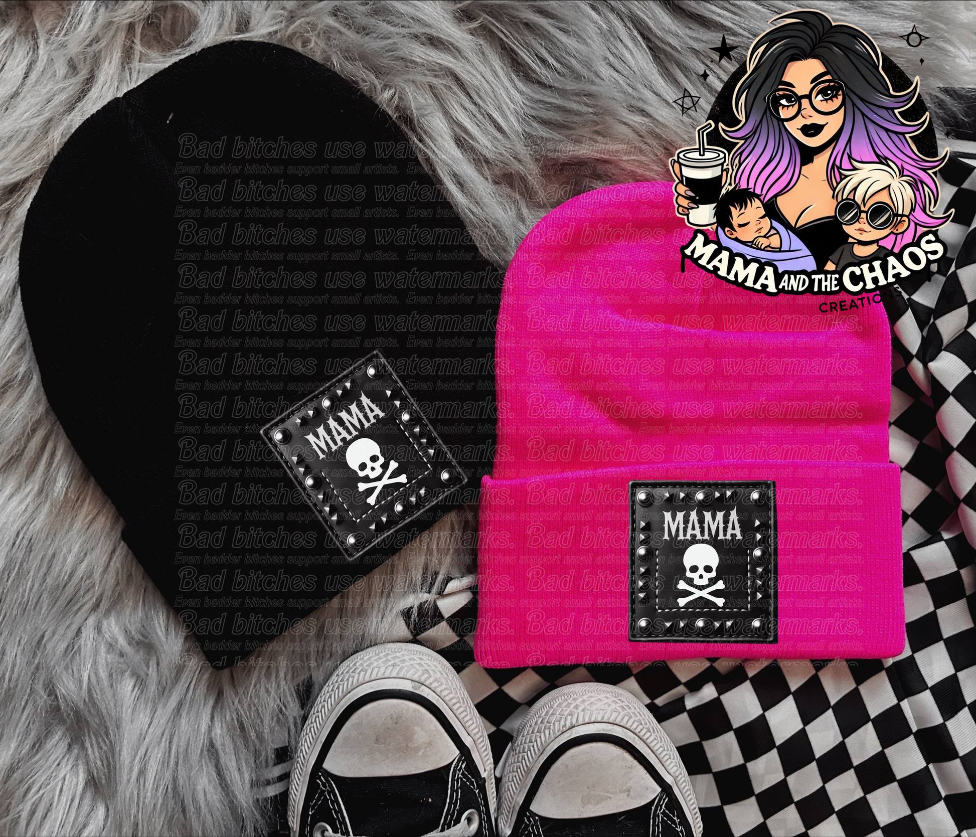 Make a bold statement with the Mama Skull Beanie! Designed with an edgy faux studded patch (no real studs), it’s perfect for all the badass mamas out there embracing their fierce side.