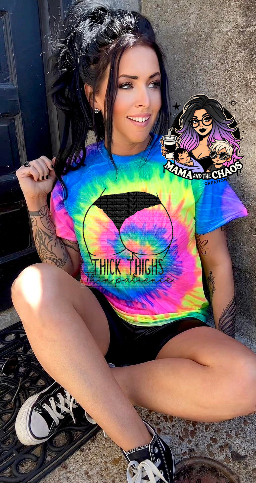 Thick Thighs, Thin Patience Tee – Tie-Dye Edition
