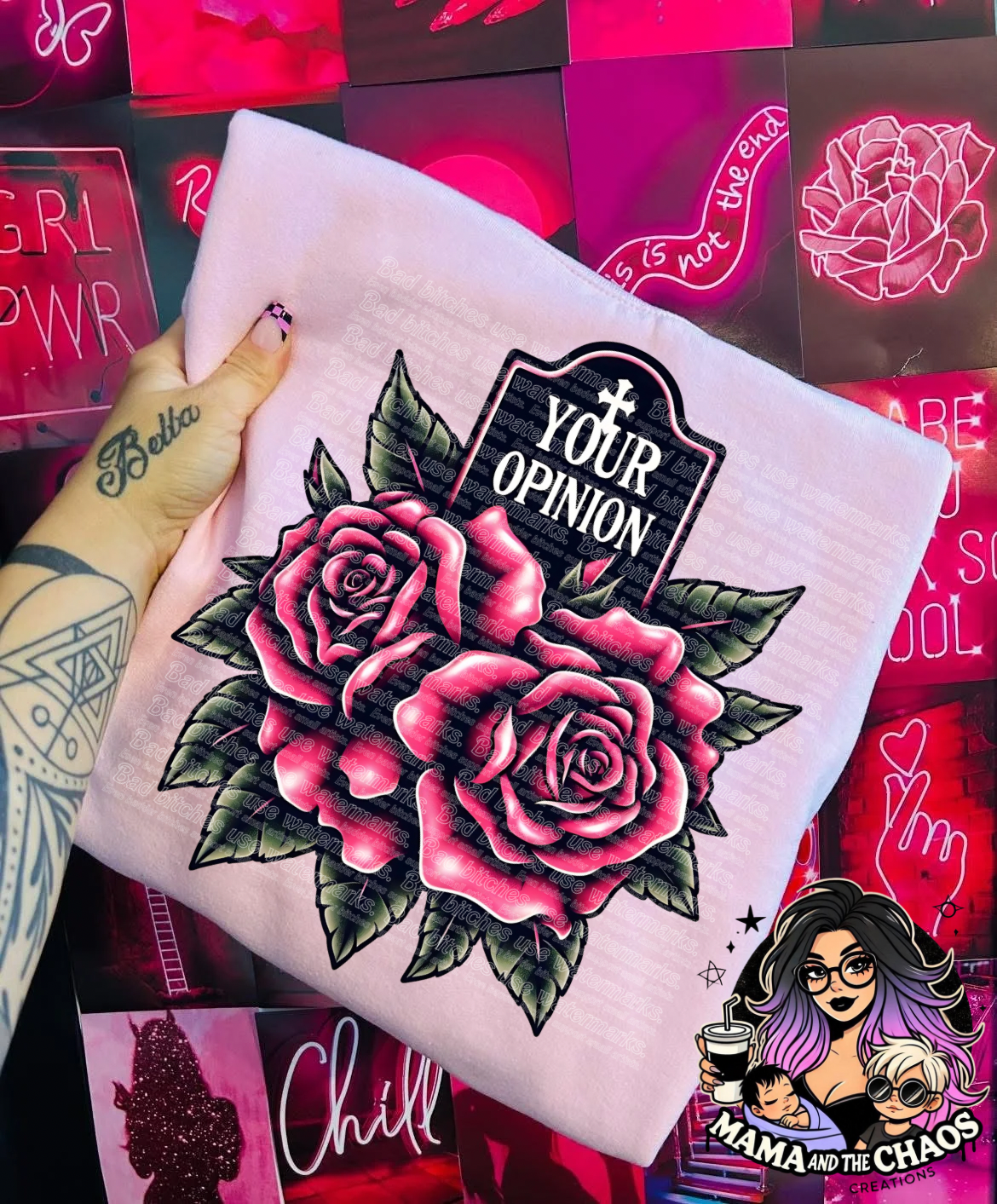 Let’s have a moment of silence… for opinions that never mattered. The Your Opinion tee delivers a perfectly savage message with a gothic tombstone nestled in a bed of vibrant roses. It’s bold, it’s beautiful, and it’s the softest way to say “I didn’t ask.”